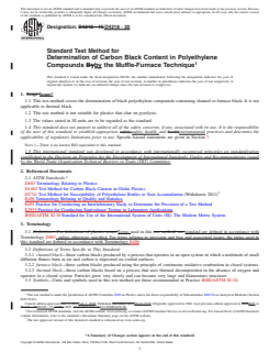 • Carbon Black Determination: The standard outlines the steps for assessing the carbon black content in polyethylene compounds using thermal decomposition in a muffle furnace.