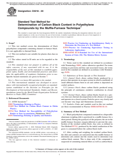 ASTM D4218-20 - Standard Test Method for Determination of Carbon Black Content in Polyethylene Compounds by the Muffle-Furnace Technique