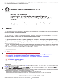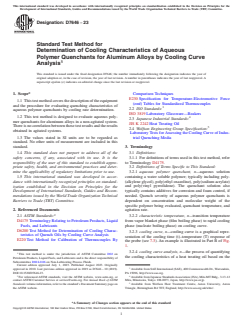 - Test Method Scope: Describes equipment and procedure for evaluating cooling characteristics of aqueous polymer quenchants for aluminum alloys.