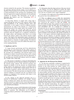 Keywords: ASTM E1217-11, analysis area, Auger electron spectroscopy, X-ray photoelectron spectroscopy, specimen area, surface analysis, electron energy analyzer, instrument alignment, spatial resolution, aperture, sharp edge method.