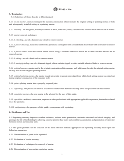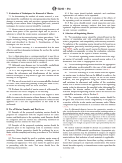 7.3 Mortar can be removed using various procedures. Techniques including raking, chiseling, routing, and grinding, are listed and