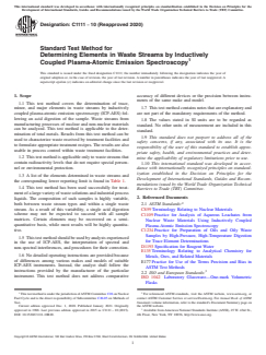 ASTM C1111-10(2020) - Standard Test Method for Determining Elements in Waste Streams by Inductively Coupled Plasma-Atomic Emission Spectroscopy