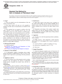 ASTM D4422-19 - Standard Test Method for Ash in Analysis of Petroleum Coke