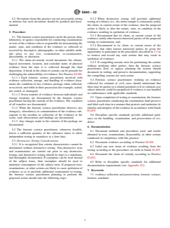 4.1 This practice establishes procedures to be followed by the forensic science practitioner to document the nature, state, or