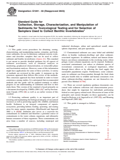 ASTM E1391-03(2023) - Standard Guide for Collection, Storage, Characterization, and Manipulation of Sediments for Toxicological Testing and for Selection of Samplers Used to Collect Benthic Invertebrates