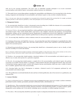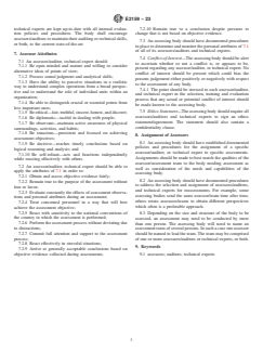 SIGNIFICANCE AND USE 3.1 In a situation where an organization is performing an evaluation of another, either formally or informally, the single most important element in the evaluation may well be the selection and assignment of a properly qualified assessor/assessment team to perform an on-site assessment. Therefore it is imperative that the person(s) performing the assessment be selected and assigned with care by the assessing organization. Two basic types of individuals normally participate in an on-site assessment: assessors/auditors and technical experts; each perform separate functions (see definitions). 3.2 This guide focuses on providing guidance regarding the responsibilities and obligations of an assessing body in the selection, training, assignment and monitoring of assessors/auditors and technical experts to carry out their evaluation functions. Note 1: In some cases, others may also participate in an assessment who are beyond the control of the assessing body: for example, government regulatory personnel, or other observers specified by a client. Such participants are not covered by this guide. SCOPE 1.1 This guide provides guidance to organizations that need to utilize persons to perform assessments/audits (assessing bodies) of other organizations (assessed bodies) for purposes of recognition, accreditation or other type of approval to perform a function. 1.2 An assessing body should consider the contents of this guide and apply it according to its unique situation. The elements of this guide should be applicable to the selection, assignment, and monitoring of assessors, auditors, and technical experts whether they are contract or permanent staff members. 1.3 The text of this standard refers to notes and footnotes that provide explanatory material. These notes and footnotes (excluding those in tables and figures) shall not be considered as requirements of this standard. 1.4 This international standard was developed in accordance with internationally recognized principles on standardization established in the Decision on Principles for the Development of International Standards, Guides and Recommendations issued by the World Trade Organization Technical Barriers to Trade (TBT) Committee.