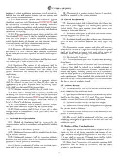 ASTM C1535-05(2023) is a standard published by ASTM International. Its full title is "Standard Practice for Application of Exterior Insulation and Finish Systems Class PI". This standard covers: SIGNIFICANCE AND USE 4.1 This practice provides minimum requirements for the application of Class PI EIFS. The requirements for materials, mixtures, and details shall be contained in the project plans and specifications. See Guide E1825 for guidance. SCOPE 1.1 This practice covers the minimum requirements and procedures for field or prefabricated application of Class PI Exterior Insulation and Finish Systems (EIFS). Class PI EIFS are systems applied over polyisocyanurate insulation board, in which the base coat ranges from not less than 1/16 in. (1.6 mm) to 1/4 in. (6.4 mm) in dry thickness, depending upon the number of nonmetallic reinforcing mesh layers encapsulated in the base coat. The base coat is then covered with a finish coat of various thickness in a variety of textures and colors. The insulation board shall be applied over a substrate or over open framing. 1.2 This practice does not cover Class PI EIFS with drainage. Consult the EIFS producer for information. 1.3 The values stated in inch-pound units are to be regarded as the standard. The SI (metric) values given in parentheses are approximate and are provided for information purposes only. 1.4 The text of this standard references notes and footnotes that provide explanatory material. These notes and footnotes shall not be considered as requirements of the standard. 1.5 This standard may involve hazardous materials, operations, and equipment. This standard does not purport to address all of the safety concerns, if any, associated with its use. It is the responsibility of the user of this standard to establish appropriate safety, health, and environmental practices and determine the applicability of regulatory limitations prior to use. 1.6 This international standard was developed in accordance with internationally recognized principles on standardization established in the Decision on Principles for the Development of International Standards, Guides and Recommendations issued by the World Trade Organization Technical Barriers to Trade (TBT) Committee.