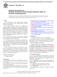 1.1 This specification covers austenitic-ferritic (duplex) stainless steel castings for valves, flanges, fittings, and other pressure-containing parts.