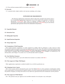 - Supplementary Testing: Optional requirements are provided for radiographic inspection, liquid penetrant inspection, Charpy impact tests, corrosion resistance (Test Methods G48), and weld repair protocols.
