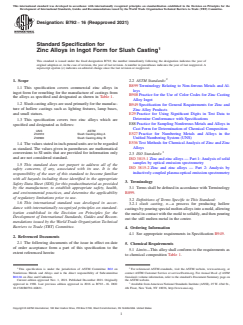 ASTM B792-16(2021) - Standard Specification for Zinc Alloys in Ingot Form for Slush Casting