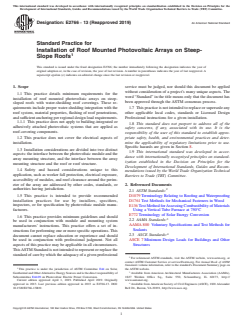 ASTM E2766-13(2019) - Standard Practice for Installation of Roof Mounted Photovoltaic Arrays on Steep-Slope Roofs