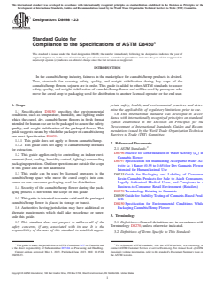ASTM D8498-23 is a guide published by ASTM International. Its full title is "Standard Guide for Compliance to the Specifications of ASTM D8450". This standard covers: SIGNIFICANCE AND USE 4.1 Standards and practices for assuring safety, quality, and weight stabilization during key steps of the cannabis/hemp flowers sojourn are in order. 4.2 This guide is intended to assist in assuring safety, quality, and weight stabilization of cannabis/hemp flower during indoor packaging operations. 4.3 This guide is intended to assist in assuring that packaged cannabis/hemp flower has a water activity of 0.55 to 0.65 per Specification D8197. 4.4 This guide is intended to be used by purveyors who move the cured crop to consumer or non-consumer packaging used for distribution. SCOPE 1.1 Specification D8450 specifies the environmental conditions, such as temperature, humidity, and lighting under which the cured, dry, cannabis/hemp flowers in fresh format intended for human use are to be packaged to assure the safety, quality, and weight stabilization of the packaged flower. This guide suggests means by which the packager of cannabis/hemp can meet Specification D8450. 1.1.1 This guide does not apply to frozen cannabis/hemp. 1.1.2 This guide does not apply to cannabis/hemp intended for extraction. 1.2 This guide applies only to controlling an indoor environment (heat, cooling, humidity control, lighting) surrounding packaging operations. Outdoor operations are outside the scope of this guide and are not addressed. 1.3 This guide can be used by licensed operators in the cannabis/hemp space who move the cured crop(s) into consumer or non-consumer packaging used for distribution. 1.4 Security of the cannabis/hemp flower during the packaging process is not within the scope of this guide. 1.5 This guide is intended to remain valid until the packaged cannabis/hemp flower is placed in storage or transit. 1.6 Authorities having jurisdiction may have additional or alternate requirements which shall take precedence or supersede this guide. 1.7 This standard does not purport to address all of the safety concerns, if any, associated with its use. It is the responsibility of the user of this standard to establish appropriate safety, health, and environmental practices and determine the applicability of regulatory limitations prior to use. 1.8 This international standard was developed in accordance with internationally recognized principles on standardization established in the Decision on Principles for the Development of International Standards, Guides and Recommendations issued by the World Trade Organization Technical Barriers to Trade (TBT) Committee.