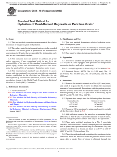 ASTM C544-18 - Standard Test Method for Hydration of Dead-Burned Magnesite or Periclase Grain - Effective Date