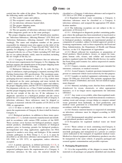 SCOPE 1.1 This guide provides a general guide to transportation, including packaging and shipping, of possibly infectious materials, tissues, and fluids that have been removed from patients during revision surgery, at postmortem, or as part of animal studies, including packaging and shipping. 1.2 This guide does not address any materials, tissues, or fluids that may contain prions. 1.3 Individuals must be properly trained prior to shipping possibly infectious materials. 1.4 This guide is a compilation of national and international regulations and guidelines that apply to the packaging and shipment of possibly infectious materials. 1.5 The values stated in SI units are to be regarded as standard. No other units of measurement are included in this standard. 1.6 This standard does not purport to address all of the safety concerns, if any, associated with its use. It is the responsibility of the user of this standard to establish appropriate safety, health, and environmental practices and determine the applicability of regulatory limitations prior to use. 1.7 This international standard was developed in accordance with internationally recognized principles on standardization established in the Decision on Principles for the Development of International Standards, Guides and Recommendations issued by the World Trade Organization Technical Barriers to Trade (TBT) Committee.