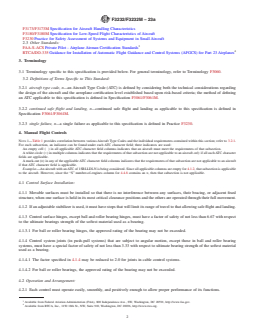 ASTM F3232/F3232M-23a is a technical specification published by ASTM International. Its full title is "Standard Specification for Flight Controls in Small Aircraft". This standard covers: ABSTRACT This specification applies to the flight control aspects of airworthiness and design for "small" aircraft. It establishes the Aircraft Type Code (ATC) compliance matrix based on airworthiness level, number of engines, type of engine(s), stall speed, cruise speed, meteorological conditions, altitude, and maneuvers. An ATC is defined by taking into account both the technical considerations regarding the design of the aircraft and the airworthiness level established based upon risk-based criteria. The requirements established by this specification for manual flight control cover control surface installation, operation and arrangement, control system stops, trim systems, control system locks, limit load static tests, operation tests, control system details, spring devices, cable systems, wing flap controls, wing flap position, and flap interconnection. Requirements for automatic flight control cover automatic pilot systems, stability augmentation, and artificial stall barrier system. SCOPE 1.1 This specification covers international standards for the flight control aspects of airworthiness and design for “small” aircraft. 1.2 The applicant for a design approval must seek the individual guidance of their respective CAA body concerning the use of this specification as part of a certification plan. For information on which CAA regulatory bodies have accepted this specification (in whole or in part) as a means of compliance to their Small Aircraft Airworthiness regulations (hereinafter referred to as “the Rules”), refer to ASTM F44 webpage (www.ASTM.org/COMMITTEE/F44.htm) which includes CAA website links. Annex A1 maps the Means of Compliance described in this Standard to EASA CS 23, amendment 5, or later, and FAA 14 CFR 23, amendment 64, or later. 1.3 The values stated in either SI units or inch-pound units are to be regarded separately as standard. The values stated in each system are not necessarily exact equivalents; therefore, to ensure conformance with the standard, each system shall be used independently of the other, and values from the two systems shall not be combined. 1.4 This standard does not purport to address all of the safety concerns, if any, associated with its use. It is the responsibility of the user of this standard to establish appropriate safety, health, and environmental practices and determine the applicability of regulatory limitations prior to use. 1.5 This international standard was developed in accordance with internationally recognized principles on standardization established in the Decision on Principles for the Development of International Standards, Guides and Recommendations issued by the World Trade Organization Technical Barriers to Trade (TBT) Committee.