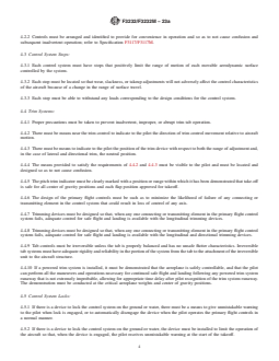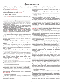 ABSTRACT This specification applies to the flight control aspects of airworthiness and design for "small" aircraft. It establishes the Aircraft Type Code (ATC) compliance matrix based on airworthiness level, number of engines, type of engine(s), stall speed, cruise speed, meteorological conditions, altitude, and maneuvers. An ATC is defined by taking into account both the technical considerations regarding the design of the aircraft and the airworthiness level established based upon risk-based criteria. The requirements established by this specification for manual flight control cover control surface installation, operation and arrangement, control system stops, trim systems, control system locks, limit load static tests, operation tests, control system details, spring devices, cable systems, wing flap controls, wing flap position, and flap interconnection. Requirements for automatic flight control cover automatic pilot systems, stability augmentation, and artificial stall barrier system. SCOPE 1.1 This specification covers international standards for the flight control aspects of airworthiness and design for “small” aircraft. 1.2 The applicant for a design approval must seek the individual guidance of their respective CAA body concerning the use of this specification as part of a certification plan. For information on which CAA regulatory bodies have accepted this specification (in whole or in part) as a means of compliance to their Small Aircraft Airworthiness regulations (hereinafter referred to as “the Rules”), refer to ASTM F44 webpage (www.ASTM.org/COMMITTEE/F44.htm) which includes CAA website links. Annex A1 maps the Means of Compliance described in this Standard to EASA CS 23, amendment 5, or later, and FAA 14 CFR 23, amendment 64, or later. 1.3 The values stated in either SI units or inch-pound units are to be regarded separately as standard. The values stated in each system are not necessarily exact equivalents; therefore, to ensure conformance with the standard, each system shall be used independently of the other, and values from the two systems shall not be combined. 1.4 This standard does not purport to address all of the safety concerns, if any, associated with its use. It is the responsibility of the user of this standard to establish appropriate safety, health, and environmental practices and determine the applicability of regulatory limitations prior to use. 1.5 This international standard was developed in accordance with internationally recognized principles on standardization established in the Decision on Principles for the Development of International Standards, Guides and Recommendations issued by the World Trade Organization Technical Barriers to Trade (TBT) Committee.