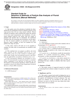 ASTM D4822-88(2019) - Standard Guide for Selection of Methods of Particle Size Analysis of Fluvial Sediments (Manual Methods)
