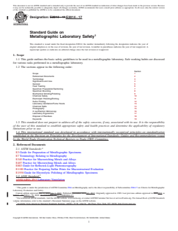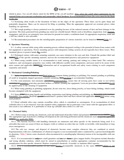 ASTM E2014-17: Standard Guide on Metallographic Laboratory Safety provides comprehensive guidelines for safe working practices in metallographic laboratories. Issued by ASTM International, this standard is designed to help laboratories identify safety hazards, establish proper protocols, and maintain a safe environment for both new and experienced personnel. The guide serves as a valuable training reference and a refresher for those involved in metallography, focusing on the safe use of chemicals, equipment, and procedures common in metallographic specimen preparation and analysis.