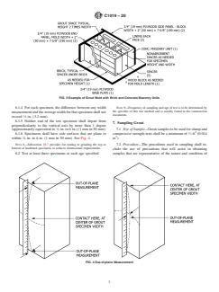 in this test method. Other methods used to obtain grout specimens include: drilling grout-filled cores of regular units; filling cores of masonry units