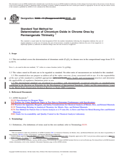 REDLINE ASTM E342-23 - Standard Test Method for Determination of Chromium Oxide in Chrome Ores by Permanganate Titrimetry