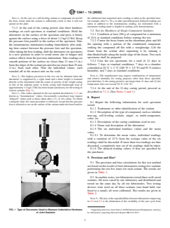 - Reporting Requirements: Outlines necessary data to be reported, such as specimen identification, description, curing conditions, durometer details, individual and mean hardness values, and any delayed reading values as specified.
