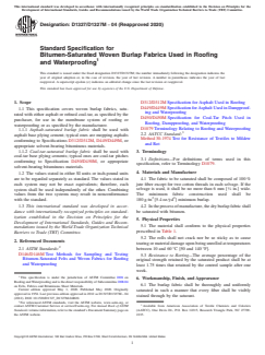 ASTM D1327/D1327M-04(2020) - Standard Specification for Bitumen-Saturated Woven Burlap Fabrics Used in Roofing and Waterproofing