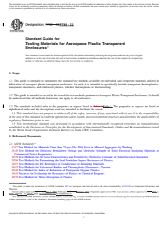 1.1 This guide is intended to summarize the standard test methods available on individual and composite materials utilized in fabrication of aerospace plastic transparent enclosures. As such, it is intended to specifically include transparent thermoplastics, transparent elastomers, and reinforced plastics, whether thermoplastic or thermosetting.