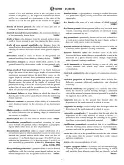 SIGNIFICANCE AND USE 3.1 This terminology can be used to find the definitions of all of those terms which are used in association with frozen materials, including rocks, soils, and water. SCOPE 1.1 This terminology includes all of those terms which relate to frozen soils and rocks. 1.2 It is based on: a list of definitions drawn up by ASTM Sub-Committee D18.19; ASTM standards; a list of definitions drawn up by the Canadian Geomorphology Research Group (CGRG); the Glossary of Permafrost and Related Ground-Ice Terms developed by the National Snow and Ice Data Center (NSIDC), at the University of Colorado, at Boulder; the Keys to Soil Taxonomy of the United States Department of Agriculture (USDA); and contributions by a number of individuals. 1.3 For all of the terms included, the source is included in parentheses after the definition. 1.4 This standard does not purport to address all of the safety concerns, if any, associated with its use. It is the responsibility of the user of this standard to establish appropriate safety, health, and environmental practices and determine the applicability of regulatory limitations prior to use. 1.5 This international standard was developed in accordance with internationally recognized principles on standardization established in the Decision on Principles for the Development of International Standards, Guides and Recommendations issued by the World Trade Organization Technical Barriers to Trade (TBT) Committee.