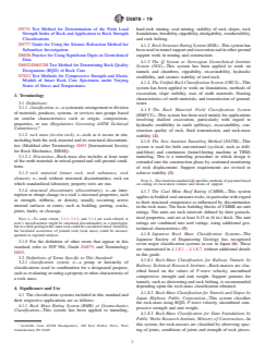 1.2 The valid, effective use of this standard is contingent upon the prior complete definition of the engineering purposes to be served and on the complete and competent definition of the geology and hydrology of the engineering site. Further, the person or persons using this standard shall have had field experience in studying rock-mass behavior. An appropriate reference for geotechnical mapping of large underground openings in rock is provided by Guide D4879.