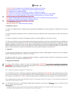 3.1 These test methods provide a reliable means for predicting the inhibiting or corrosive properties of admixtures to be used in concrete.