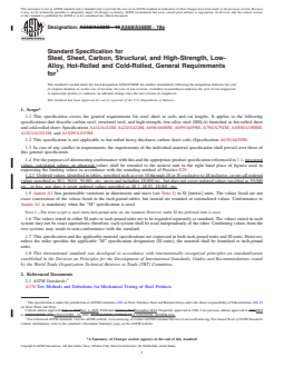 ASTM A568/A568M-19a: Standard Specification for Steel, Sheet, Carbon, Structural, and High-Strength, Low-Alloy, Hot-Rolled and Cold-Rolled, General Requirements for defines the general requirements for steel sheets produced in coils and cut lengths. Developed and maintained by ASTM International, this specification is widely referenced for manufacturing and procurement of carbon steel, structural steel, and high-strength, low-alloy (HSLA) sheets. The standard ensures that steel sheets meet quality control requirements regarding chemical composition, mechanical properties, dimensional tolerances, and testing methods.