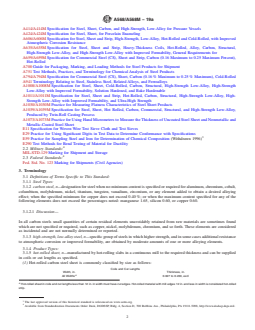 The standard applies to several related material specifications, including A414/A414M, A424/A424M, A606/A606M, A659/A659M, A794/A794M, A1008/A1008M, A1011/A1011M, and A1039/A1039M. It is not applicable to hot-rolled heavy-thickness carbon sheet coils specified under A635/A635M.