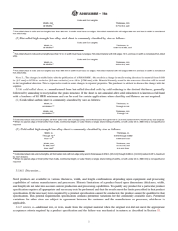 ABSTRACT This specification covers the general requirements for carbon, structural, and high-strength, low alloy steel sheets in coils and cut lengths. The steel sheets shall be manufactured by hot-rolling, cold-rolling or temper rolling. Cold-rolled sheets shall undergo annealing after being cold reduced to thickness. Products shall undergo cast or heat analysis, product, check, or verification analysis, and sampling. Product analyses shall be performed wherein specimens shall conform to required chemical composition of carbon, manganese, phosphorus, sulfur, silicon, copper, nickel, chromium, molybdenum, vanadium, columbium, niobium, titanium, aluminum, and nitrogen. Mechanical properties of the materials shall conform to the following properties: tensile strength, yield strength, and bending strength. Thickness, length, width and flatness tolerances and allowances for cold-rolled and hot-rolled sheets are indicated. Steel may be produced as ingot-cast or strand-cast. SCOPE 1.1 This specification covers the general requirements for steel sheet in coils and cut lengths. It applies to the following specifications that describe carbon steel, structural steel, and high-strength, low-alloy steel (HSLA) furnished as hot-rolled sheet and cold-rolled sheet: Specifications A414/A414M, A424/A424M, A606/A606M, A659/A659M, A794/A794M, A1008/A1008M, A1011/A1011M, and A1039/A1039M. 1.2 This specification is not applicable to hot-rolled heavy-thickness carbon sheet coils (Specification A635/A635M). 1.3 In case of any conflict in requirements, the requirements of the individual material specification shall prevail over those of this general specification. 1.4 For the purposes of determining conformance with this and the appropriate product specification referenced in 1.1, measured values, calculated values, or observed values shall be rounded to the nearest unit in the right hand place of figures used in expressing the limiting values in accordance with the rounding method of Practice E29. 1.4.1 Ordered values, identified in tables, specified such as over 30 through 48 or 30 exclusive to 48 inclusive, covers all ordered values specified as 30.1, 30.01, 30.001, etc., up to and including 48.000 etc., but does not cover ordered values specified as 30.000 etc., or less, nor does it cover ordered values specified as 48.1, 48.01, 48.001, etc. 1.5 Annex A1 lists permissible variations in dimensions and mass (see Note 1) in SI [metric] units. The values listed are not exact conversions of the values listed in the inch-pound tables, but instead are rounded or rationalized values. Conformance to Annex A1 is mandatory when the “M” specification is used. Note 1: The term weight is used when inch-pound units are the standard. However, under SI the preferred term is mass. 1.6 The values stated in either SI units or inch-pound units are to be regarded separately as standard. The values stated in each system may not be exact equivalents; therefore, each system shall be used independently of the other. Combining values from the two systems may result in non-conformance with the standard. 1.7 This specification and the applicable material specifications are expressed in both inch-pound units and SI units. However, unless the order specifies the applicable “M” specification designation (SI units), the material shall be furnished to inch-pound units. 1.8 This international standard was developed in accordance with internationally recognized principles on standardization established in the Decision on Principles for the Development of International Standards, Guides and Recommendations issued by the World Trade Organization Technical Barriers to Trade (TBT) Committee.