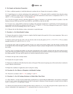 - Adhesion Testing: The standard outlines a method to assess whether solid film lubricants are effectively bonded to anodized aluminum panels. The procedure includes exposure to water or other selected fluids, followed by a tape test to detect any loss of coating that exposes the metal surface.
