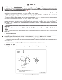 ASTM F2795-18 is a standard published by ASTM International. Its full title is "Standard Test Method for Performance of Self-Contained Soft Serve and Shake Freezers". This standard covers: SIGNIFICANCE AND USE 5.1 The freeze-down energy consumption and duration can be used to determine time and energy required for a freezer to be ready to serve when loaded with mix. 5.2 The minimum dispensing interval determination is used to determine the rate at which the product will be dispensed during the Heavy-Use Energy Consumption and Production Capacity Test (10.5). Measuring overrun during this test is critical to determining production capacity rating in gallons per hour. 5.3 Heavy-use energy consumption can be used by an operator to determine energy consumption during peak usage when selecting a soft-serve freezer. Measuring overrun during this test is critical to determining production capacity rating in gallons per hour. 5.4 Production capacity can be used by an operator in selecting a soft-serve or shake freezer that meets their production requirements. Measuring overrun during this test is critical to determining production capacity rating in gallons per hour. 5.5 Impact draw is used to determine the peak rate at which servable quality product (as defined in 10.2.5) can be dispensed from a soft-serve or shake freezer. 5.6 Idle energy rate is a precise indicator of a soft serve freezer’s energy performance under a stabilized ready-to-serve operating condition. This information enables the food service operator to consider energy performance when selecting soft-serve or shake equipment. 5.7 Stand-by (night mode) energy rate is a precise indicator of a soft-serve or shake freezer’s energy performance under a simulated overnight operating condition. This information enables the food service operator to consider energy performance when selecting soft-serve or shake equipment, if applicable. 5.8 Heat Treat cycle energy consumption is a precise indicator of a soft serve or shake freezer’s energy performance when operated in a heat treatment cycle. This information can be used by an operator to consider the energy requirement of using a heat treat cycle, if ap... SCOPE 1.1 This test method evaluates the energy consumption and performance of soft serve ice cream and shake freezers. The food service operator can use this test to evaluate and select an appropriate soft serve or shake freezer and understand its energy consumption and production capabilities. 1.2 This test method applies to the following types of soft serve and shake freezers: (any of which may or may not have a reservoir for liquid mix). Included in these test methods are conventional and heat-treatment freezers. The unit may include separate refrigeration systems for the frozen product and fresh mix and may be either air-cooled or water-cooled. 1.3 The soft serve/shake freezers will be tested for the following (where applicable): 1.3.1 Maximum power input, or maximum current draw, 1.3.2 Initial freeze-down energy consumption and duration, 1.3.3 Heavy-use energy consumption, 1.3.4 Production capacity, 1.3.5 Overrun, 1.3.6 Impact performance, 1.3.7 Idle energy rate, and 1.3.8 Heat treat cycle energy consumption (if applicable). 1.4 The values stated in inch-pound units are to be regarded as standard. The values given in parentheses are mathematical conversions to SI units that are provided for information only and are not considered standard. 1.5 This standard does not purport to address all of the safety concerns, if any, associated with its use. It is the responsibility of the user of this standard to establish appropriate safety, health, and environmental practices and determine the applicability of regulatory limitations prior to use. 1.6 This international standard was developed in accordance with internationally recognized principles on standardization established in the Decision on Principles for the Development of International Standards, Guides and Recommendations issued by the World Trade Organization Technical Barriers to Trade (TBT) Committee.
