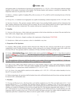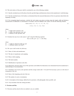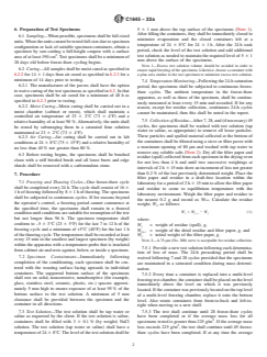 - Reporting Requirements: Includes comprehensive documentation of sample identification, curing history, cycle count, mass loss, surface damage, and test deviations.