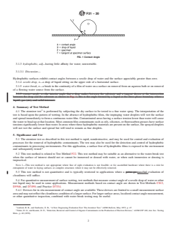 5.4 For quantitative measurement of surface wetting, test methods that measure contact angle of a sessile drop of water or other test liquid may be used in some applications. Measurement methods based on contact angle are shown in Test Methods C813, D5946, and D7490; and Practice D7334.