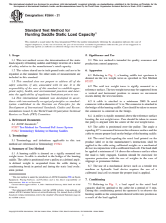 ASTM F3544-21 is a standard published by ASTM International. Its full title is "Standard Test Method for Hunting Saddle Static Load Capacity". This standard covers: SIGNIFICANCE AND USE 5.1 This test method is intended for quality assurance and production control purposes. SCOPE 1.1 This test method covers the determination of the static load capacity of hunting saddles and bridge in terms of a factor of safety relative to the manufacturer’s rated capacity. 1.2 The values shared are in inch-pound units and are to be regarded as the standard. No other units of measurement are included in this standard. 1.3 This standard does not purport to address all of the safety concerns, if any, associated with its use. It is the responsibility of the user of this standard to establish appropriate safety, health, and environmental practices and determine the applicability of regulatory limitations prior to use. 1.4 This international standard was developed in accordance with internationally recognized principles on standardization established in the Decision on Principles for the Development of International Standards, Guides and Recommendations issued by the World Trade Organization Technical Barriers to Trade (TBT) Committee.