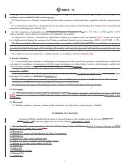 Keywords: rigid poly(vinyl chloride), PVC extrusions, interior profiles, ASTM D3678-19, dimensional stability, recycled plastic, building products, extrusion quality, interior building standards.