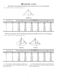 - Rating and Limitations: Working load limits are provided for a range of chain sizes and sling angles. The standard excludes slings intended for use at temperatures above 400°F (200°C), in corrosive environments, or for non-symmetrical leg loadings.