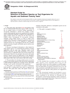 ASTM E1850-04(2019) - Standard Guide for Selection of Resident Species as Test Organisms for Aquatic and Sediment Toxicity Tests