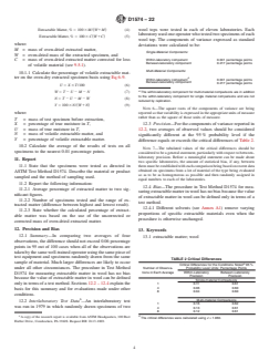 - The method involves precise weighing, extraction, drying, and calculation of extractable matter as a percentage of the specimen’s oven-dry mass.