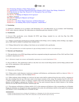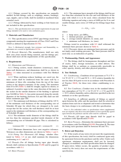 Dimensions and Tolerances: The standard sets minimum wall thickness, socket depths, and inside diameters, with measurements conforming to specific ASTM methods. Minimum wall thickness must be at least 125% of the corresponding pipe size, ensuring robust construction.