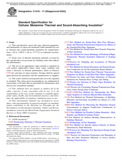 ASTM C1410-17(2023) - Standard Specification for Cellular Melamine Thermal and Sound-Absorbing Insulation