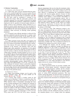 The standard discusses various detector cell geometries, such as parallel-plate, concentric-tube, and asymmetric types. It covers recommended radioisotope sources (tritium and nickel-63), their placement, activity, and maintenance, as well as important safety considerations regarding radioactive materials.Operational Modes