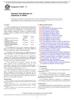 The standard includes four test methods for cadmium analysis:- Test Method A: Atomic absorption, direct (0.05 to 2.0 mg/L)