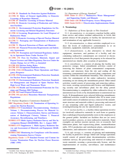 - ASTM E1167: Guide for Radiation Protection Program for Decommissioning Operations