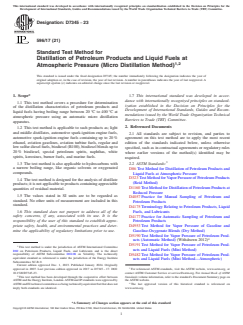 Keywords: ASTM D7345-23, distillation test method, micro distillation, petroleum product volatility, liquid fuel analysis, automatic distillation apparatus, fuel quality control, ASTM D86 alternative, refinery process monitoring, field and lab petroleum testing.