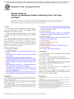 ASTM F1908-08(2018) - Standard Guide for Fences for Residential Outdoor Swimming Pools, Hot Tubs, and Spas