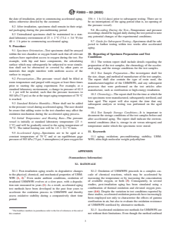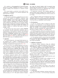 SIGNIFICANCE AND USE 4.1 This practice summarizes a method that may be used to accelerate the oxidation of UHMWPE components using elevated temperature and elevated oxygen pressure. Under real-time conditions, such as shelf aging and implantation, oxidative changes to UHMWPE after sterilization using high-energy radiation may take months or years to produce changes that may result in deleterious mechanical performance. The method outlined in this practice permits the evaluation of oxidative stability in a relatively short period of time (for example, weeks). 4.2 This practice may also be used to oxidize UHMWPE test specimens and joint replacement components prior to characterization of their physical, chemical, and mechanical properties. In particular, this practice may be used for accelerated aging of UHMWPE components prior to evaluation in a hip or knee joint wear simulator as outlined in Guide F1714 (hip wear), Guide F1715 (knee wear), ISO 14242 (hip wear), or ISO 14243 (knee wear), or combination thereof. SCOPE 1.1 It is the intent of this practice to permit an investigator to evaluate the oxidative stability of UHMWPE materials as a function of processing and sterilization method. This practice describes a laboratory procedure for accelerated aging of ultra-high molecular weight polyethylene (UHMWPE) specimens and components for total joint prostheses. The UHMWPE is aged at elevated temperature and at elevated oxygen pressure, to accelerate oxidation of the material and thereby allow for the evaluation of its long-term chemical and mechanical stability. 1.2 Although the accelerated aging method described by this practice will permit an investigator to compare the oxidative stability of different UHMWPE materials, it is recognized that this method may not precisely simulate the degradative mechanisms for an implant during real-time shelf aging and implantation. 1.3 The accelerated aging method specified herein has been validated based on oxidation levels exhibited by certain shelf-aged UHMWPE components packaged in air and sterilized with gamma radiation. The method has not been shown to be representative of shelf aging when the UHMWPE is packaged in an environment other than air. For example, this practice has not been directly correlated with the shelf life of components that have been sealed in a low-oxygen package, such as nitrogen. This practice is not intended to simulate any change that may occur in UHMWPE following implantation. 1.4 The values stated in SI units are to be regarded as standard. The values given in parentheses are mathematical conversions to inch-pound units that are for information only and are not considered standard. 1.5 This standard does not purport to address all of the safety concerns, if any, associated with its use. It is the responsibility of the user of this standard to establish appropriate safety, health, and environmental practices and determine the applicability of regulatory limitations prior to use. 1.6 This international standard was developed in accordance with internationally recognized principles on standardization established in the Decision on Principles for the Development of International Standards, Guides and Recommendations issued by the World Trade Organization Technical Barriers to Trade (TBT) Committee.